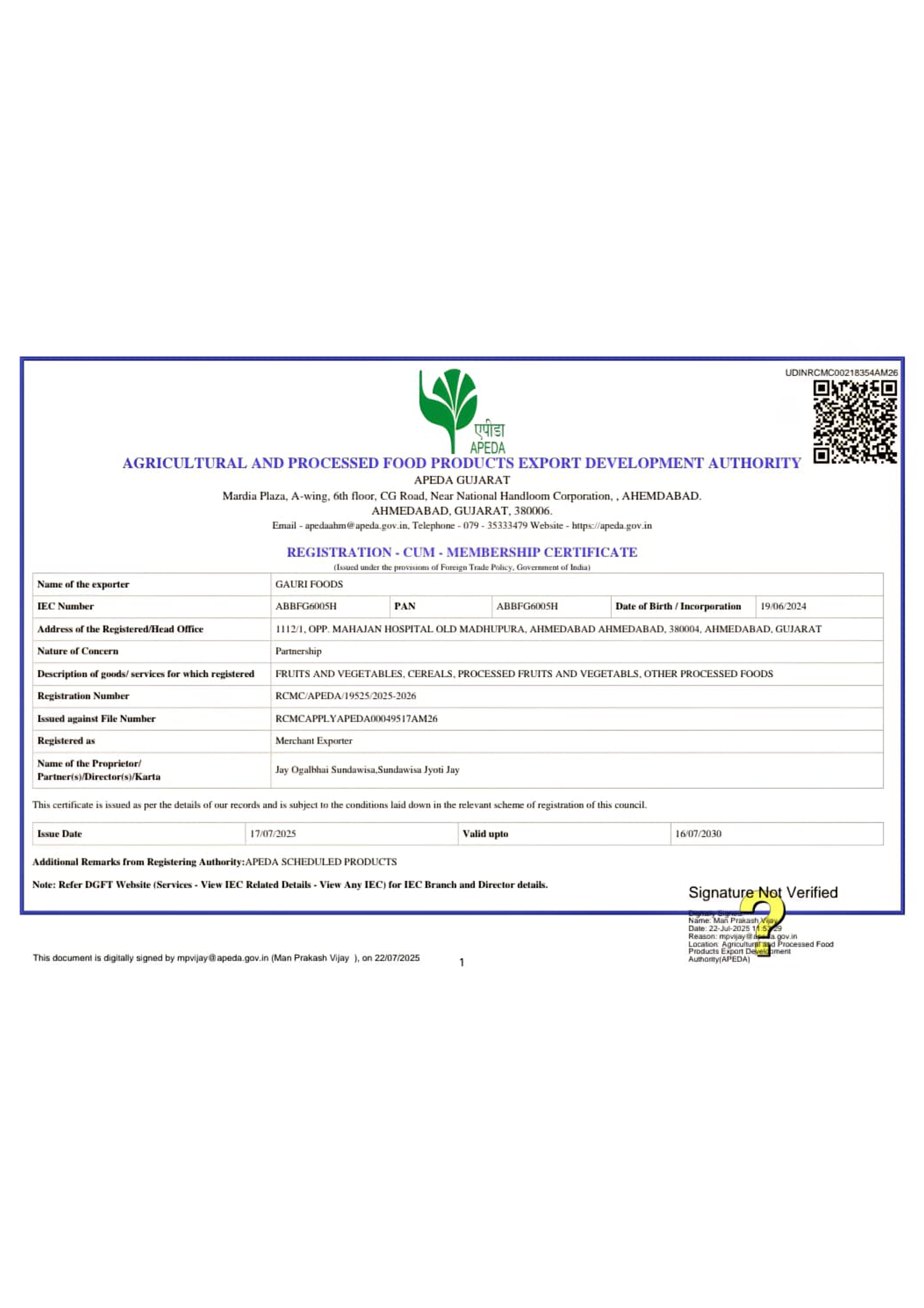 We are proud to be the third generation in a family legacy of excellence in the food industry. Our journey began with our parent company, Sharda Traders, established in Ahmedabad in 1995, which earned a strong reputation in the domestic market. Building on this foundation, Gauri Foods was launched in July 2024 with a focused vision to expand globally as an export-oriented brand.